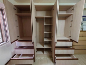 LOFT風搭配上木紋板面襯托出廚房的實用性~手感的實木把手,賦予衣櫃更高的質感!