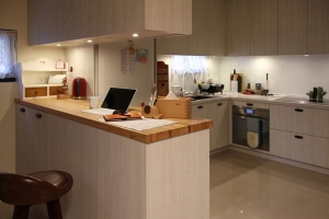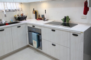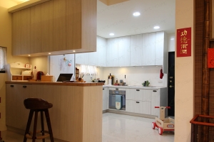 自然簡約搭配白系木紋裡的線條,呈現空間廚房美學