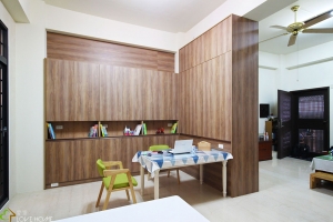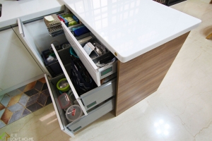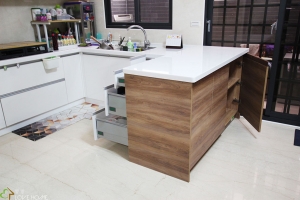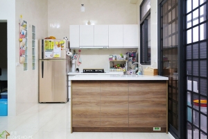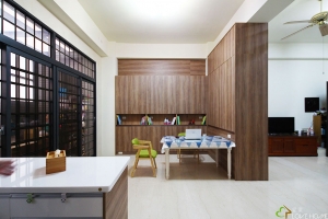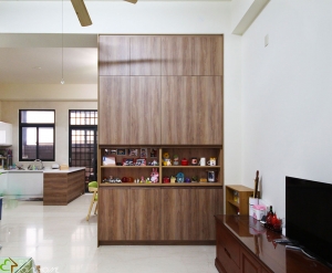 簡約混搭把實木把手元素置入櫥櫃內,運用把手線條勾勒出美學的韻味