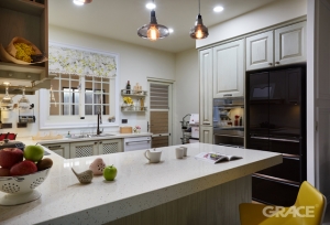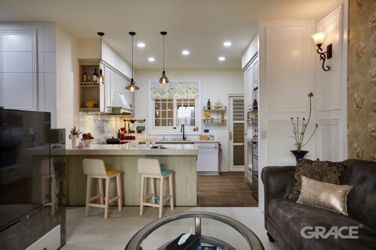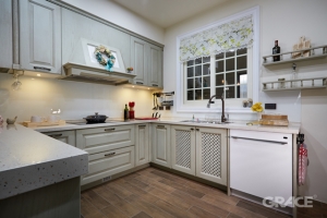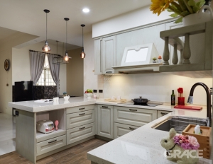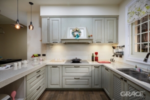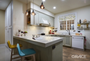 搭配湖水綠刷紋的鄉村廚具,源自大自然的大地色彩,是最適合想要打造舒壓居家氛圍的顏色!