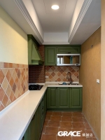 磁磚和地磚都來自歐洲進口,南法鄉村鮮明色彩和充滿人文手感的線條融入餐廚設計中,讓一天的愜意生活,從廚房開始。
