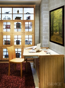塞哥維亞系列 書房空間 經典的塞哥維亞是西班牙的古老小城,熱情奔放是當地的風俗民情,而鬥牛、佛朗明哥舞更是當地的精神象徵。 熱情溫暖的色調、透光的清玻璃、深色調的雕柱增加其穩重性。 簡樸的書房空間,便於收納的貼心設計, 為自然鄉村的書房空間營造舒適寧靜之感。